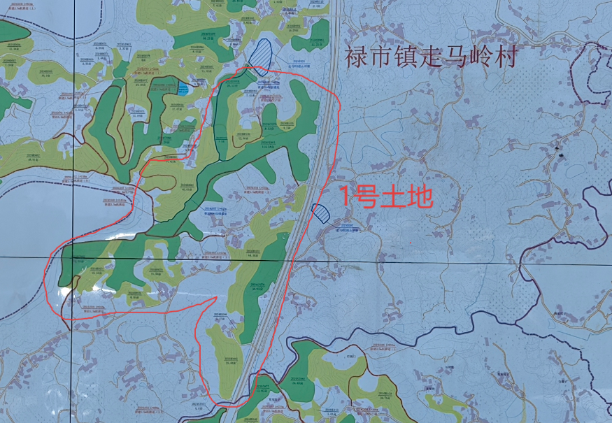 1号土地面积:410.87亩,位置:走马岭村1、2、8组,东至:夏家湾高速公路沿线,南至:三圣寨交界,西至:包尖岩,北至:8组三坪塘。