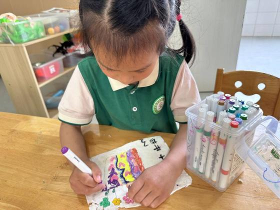 造纸完成后,小朋友们用自制的纸编写绘本书。他们拿起画笔,在亲手制作的纸张上尽情挥洒创意。有的小朋友画下了古法造纸的有趣场景,有的则描绘了自己心中的童话世界。