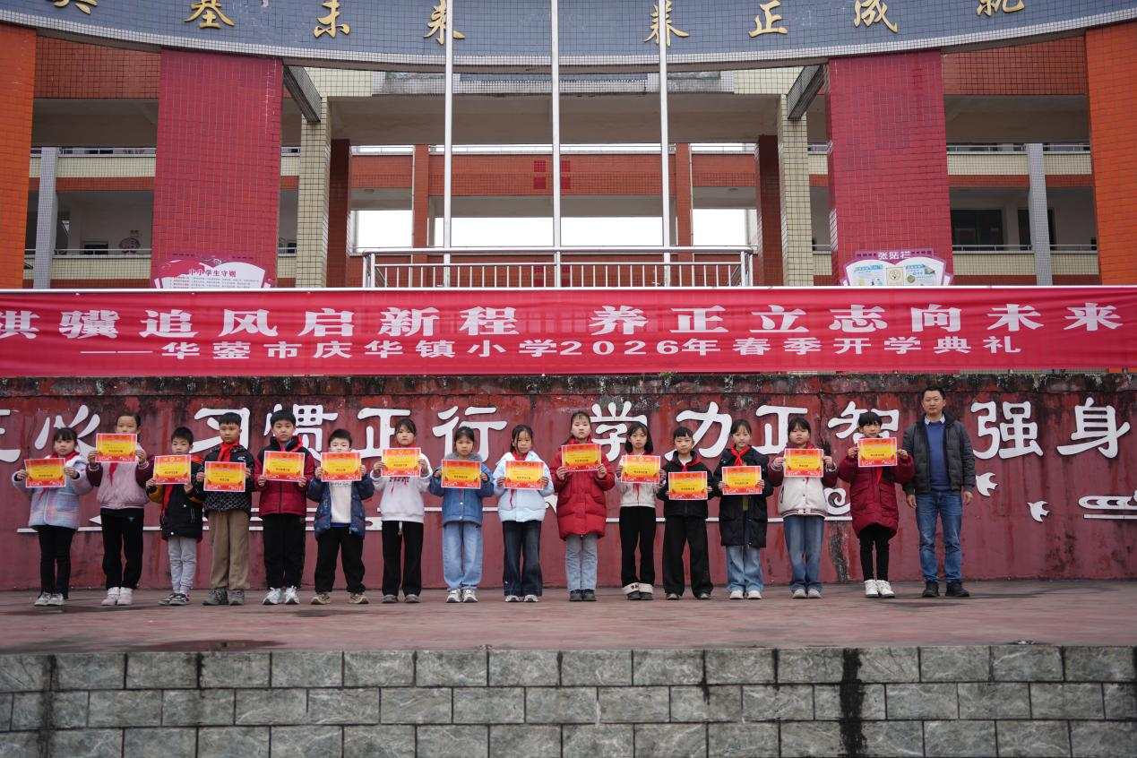 春风送暖,万物复苏。3月2日上午,华蓥市庆华镇小学全体师生齐聚校园操场,隆重举行以“骐骥追风启新程,养正立志向未来”为主题的2026年春季开学典礼。