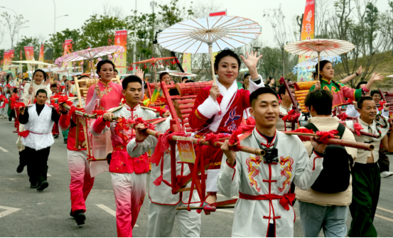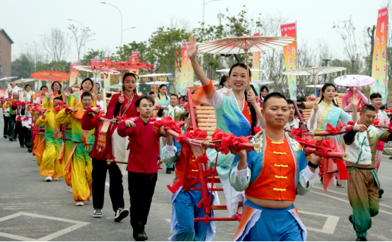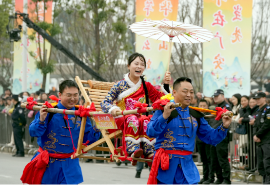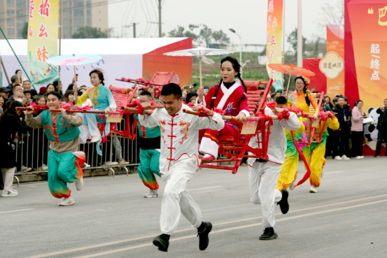 “华蓥山滑竿抬幺妹”是国家级非物质文化遗产,起源于唐宋时期华蓥山庙会祈福习俗,是以斑竹为架、凉椅为座,融合竞速、表演、对歌等于一体的川东民俗瑰宝,承载着当地民众祈求丰饶、乐观坚韧的生活智慧。本次活动以非遗展演为核心,既传承“滑竿抬幺妹,祈求五谷丰”的古老寓意,又巧妙融入元旦、春节的双节氛围,为“小平故里·安逸广安”文旅品牌注入可触可感的生命力。