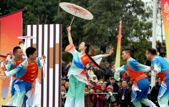 下午2点30分,启动仪式在富有浓郁地方特色的舞蹈《滑竿抬出幸福来》中拉开序幕。演员们通过灵动舒展的舞姿,将非遗文化的生活气息与艺术韵味展现得淋漓尽致。