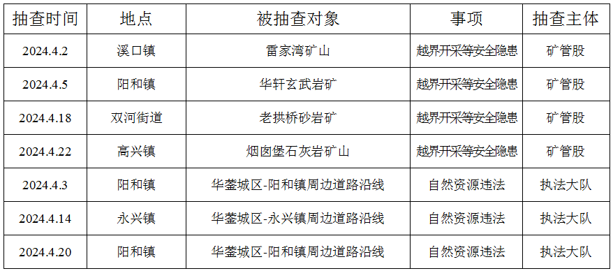华蓥市自然资源和林业局“双随机抽查”监管工作统计表(2024年4月)